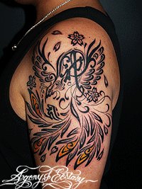 【東京都 足立区 M.H様 】左二の腕にトライバル鳳凰と桜 を彫られた方より